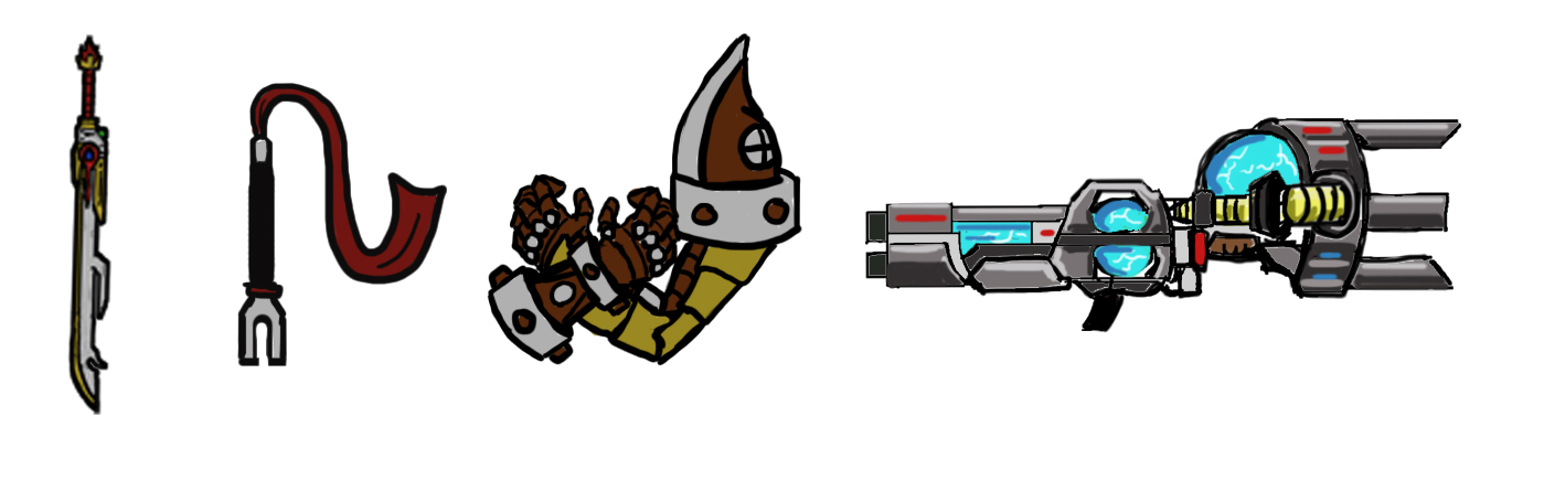 From its start, combat systems in Tempus revolved around the player eventually having four different weapons–a balanced weapon, the sword, a slow heavy hitter, the gauntlets, a medium ranged utility weapon, the whip, and a long ranged gun style weapon, the railgun. The original concept also saw each weapon imbued with an element–fire, earth, water, and electricity, respectively–and having unique attacks depending on the weapon used before and after each strike, as well as whether the strike was light, heavy, or special.